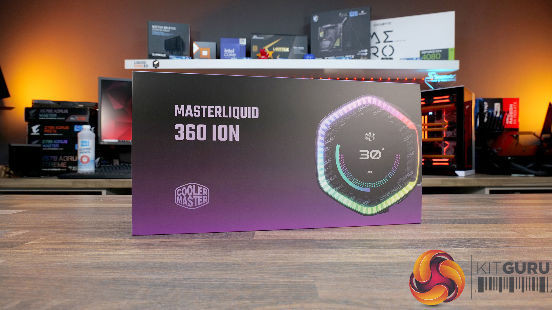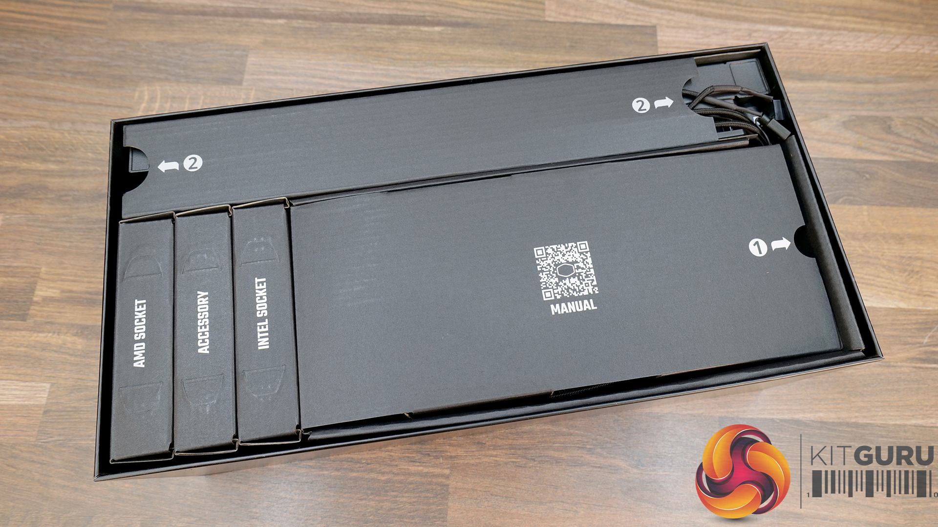 Cooler Master ships the MasterLiquid 360 ION in a cardboard box with an outer card sleeve showing the product name and image of the CPU block on the front with key features and specifications listed on the back. Inside everything is sorted into individual compartments and labelled which is tidy looking.