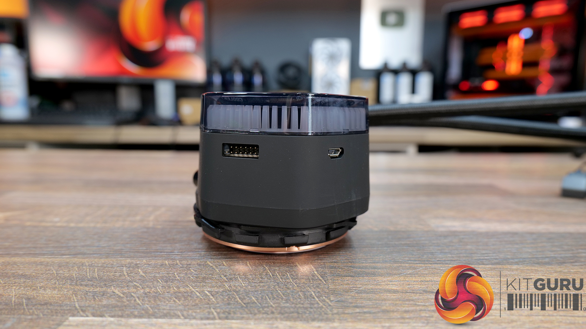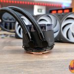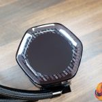 At the CPU block the tubing enters via two 90° rotary fittings, the side of the pump housing has a rubberised feel to it and on top of the CPU block is a glossy clear plastic cover with a 2.1-inch LCD and RGB illumination beneath the cover.
