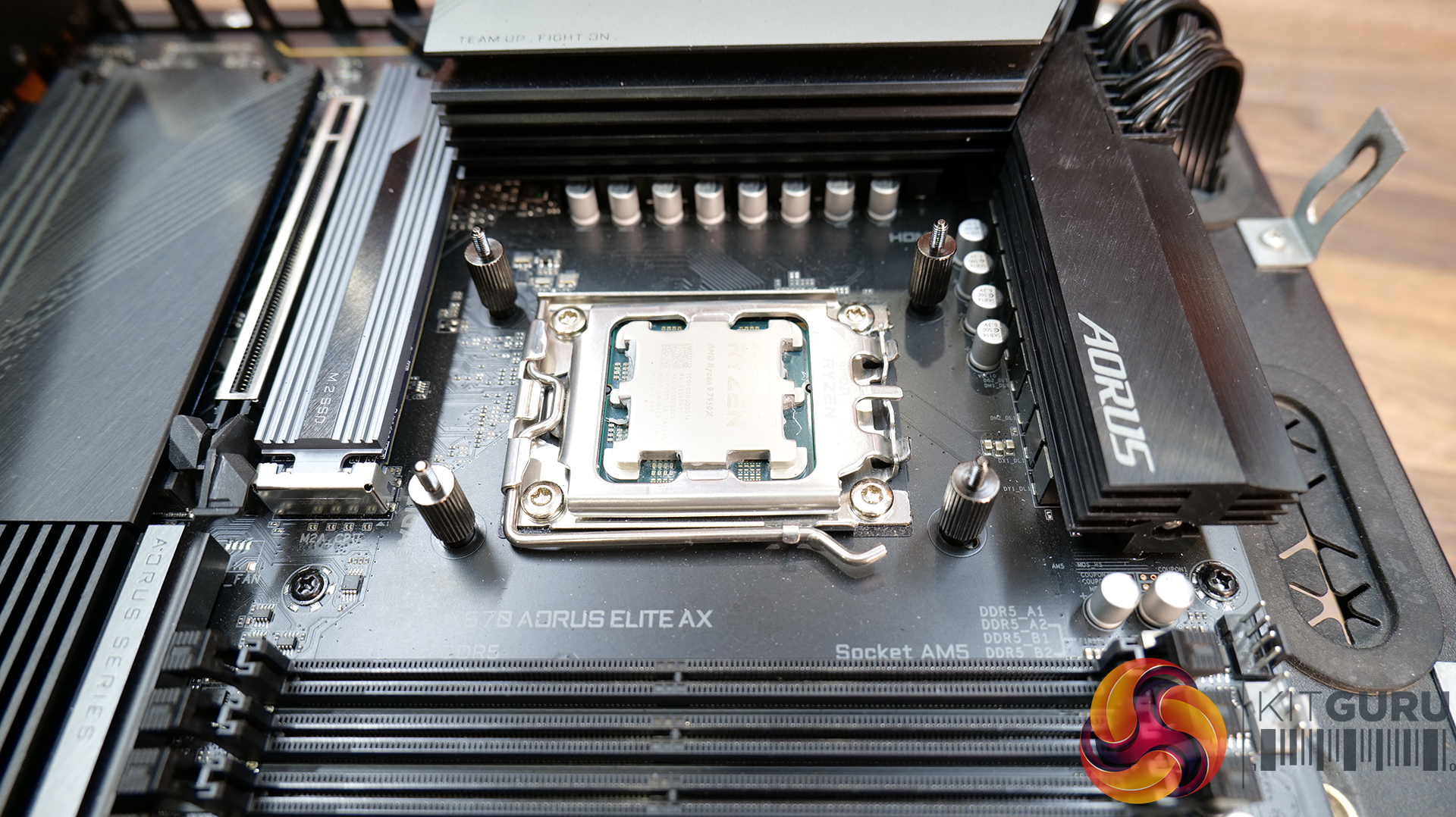 Now the CPU block can be lowered into position over the CPU, aligning the mounting holes in the bracket with the standoffs. Initially tighten the thumbscrews up by hand working evenly and progressively for best contact, then finish off tightening using a screwdriver.