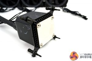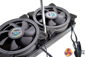 The first step to install any all-in-one CPU cooler is to attach the fans to the radiator. You must first decide whether you want to run the fans in a push or pull configuration, once you have decided, simply use the twelve long black fan screws and fix the fans securely in position to the radiator.