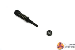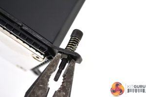 The second part of preparing the CPU block is to fit the mounting screws, along with washes, springs and nuts to the upper mounting brackets. For intel 115x platforms, use the long screws with both coarse and fine threads, slip a spring over the screw first, then a washer below.