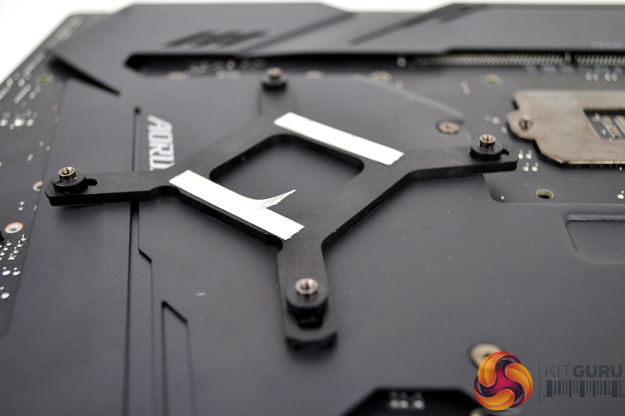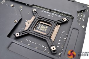 Now move on to prepare the motherboard, Intel socket 115x installation requires the fitting of a retention backplate to the rear of the motherboard. To do this simply flip the motherboard over, if it’s out of the case or access it from the PC case side panel. Peel off the self-adhesive backing on the backplate and line up the motherboard mounting holes with the backplate threads and press the backplate in position until is it stuck in place.