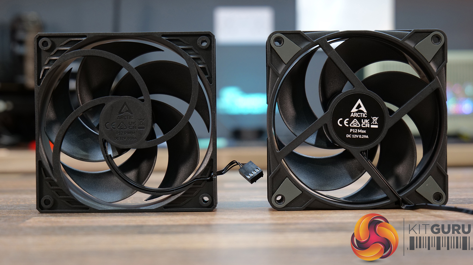 As well as a wider PWM speed range and much higher maximum RPM, the official Arctic specs and feature list suggest that the P12 Max fans are equipped with an improved motor that produces less vibration, a redesigned closed fan blade for improved stability at high RPM and blade angle adjustment, as well as a more durable dual ball bearing for longer service life. All this combined will produce focused airflow and higher static pressure making the P12 Max ideal for any scenario.