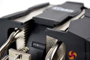 The first step of the installation process is to prepare the cooler. As we mentioned earlier, disengage the central fan including shroud and slide upwards to remove. The front fan and rear plastic shroud can stay in place as they don’t interfere with installation.