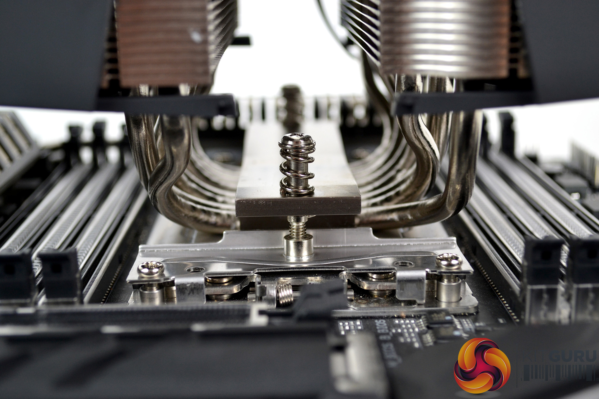 The mounting screws will be at their fully tightened position when the thread has completely bottomed out on the mounting holes. Notice there will be visible thermal compound which has been squeezed out when the cooler is correctly mounted and fully contacting the CPU HIS.
