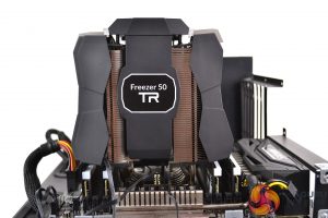 If your motherboard supports 3-pin 5V ARGB connection, now would be a good time to connect this up too. Unfortunately, Arctic has not supplied any RGB adaptor cables with the Freezer 50 TR, so we were unable to connect to our Gigabyte Aorus X399 Gaming 7 motherboard with an out of the box solution.