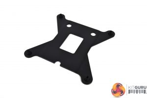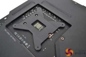 With no pre-installation preparation requirements for the radiator or fans, we will swiftly move on to installation on the motherboard. First, take the rear retention bracket and locate it on the back of the motherboard over the CPU socket retention plate. Note how the cutouts line up over the screws.