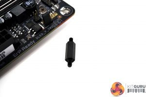 Now, take the four Intel 115X mounting posts and tighten them in place to the rear retention bracket through the holes in the motherboard. Tightening down by hand should be enough to nip them up. Make sure they are all evenly tight before moving onto the next stage.