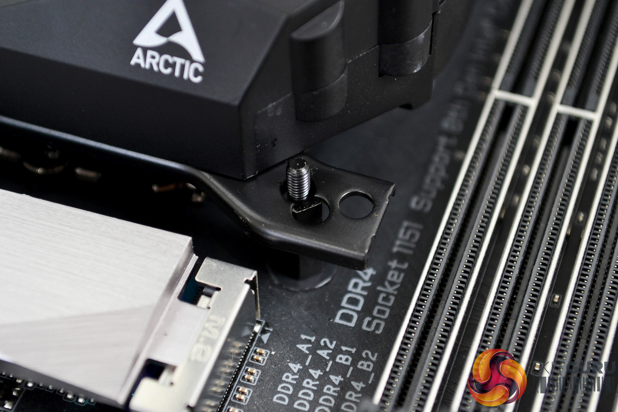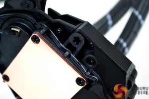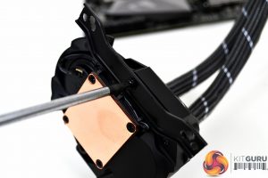 Next, apply the thermal compound to the CPU IHS in your preferred method and lower the pump down onto the CPU socket in the orientation best suited to your motherboard layout. Using the four thumbscrews, tighten the pump down in an X pattern to ensure an equal spread of pressure. Final tightening can be achieved with a Philips screwdriver.