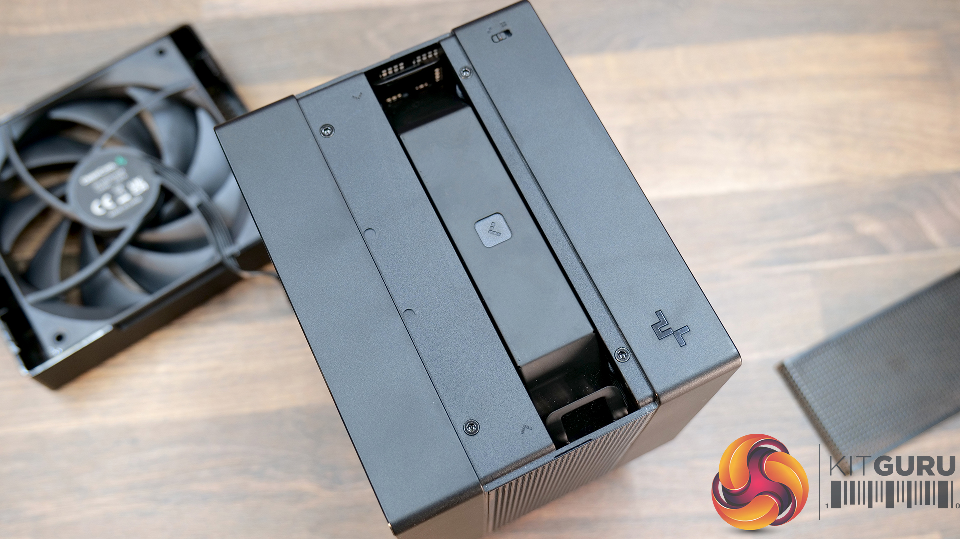 - The cooler is equipped with 120mm and 140mm DeepCool FDB fans and a heatsink-mounted switch for swapping between performance and quiet fan modes.