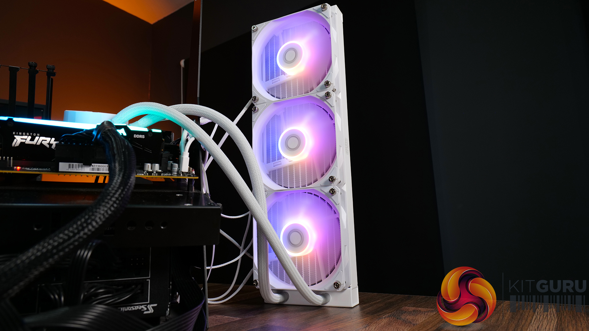 - Upgraded 120mm Cooler Master ARGB fans delivering optimal radiator airflow and customisable lighting options. Fans feature standard 3-pin 5v ARGB connections and 4-pin PWM fan header connections for quick installation and maximum compatibility.