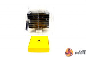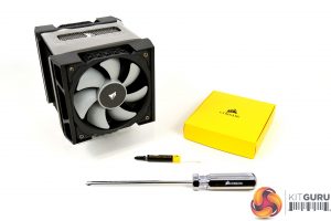 Inside the cardboard box, Corsair has further protected the cooler from potential damage during shipping with a corrugated plastic cover. Included in the packaging is a smaller box that contains mounting hardware, cables and instructions. Corsair has also included a Philips screwdriver to help with installation and an extra tube of its XTM50 thermal compound in addition to the pre-applied thermal compound on the base of the cooler, which is a nice touch.