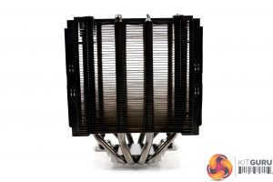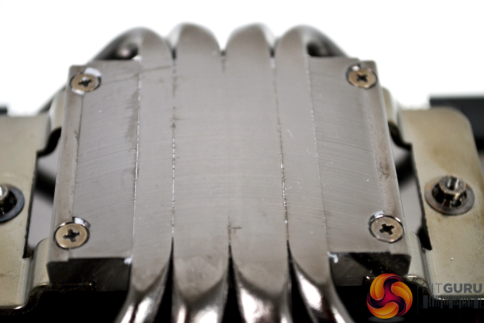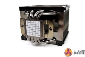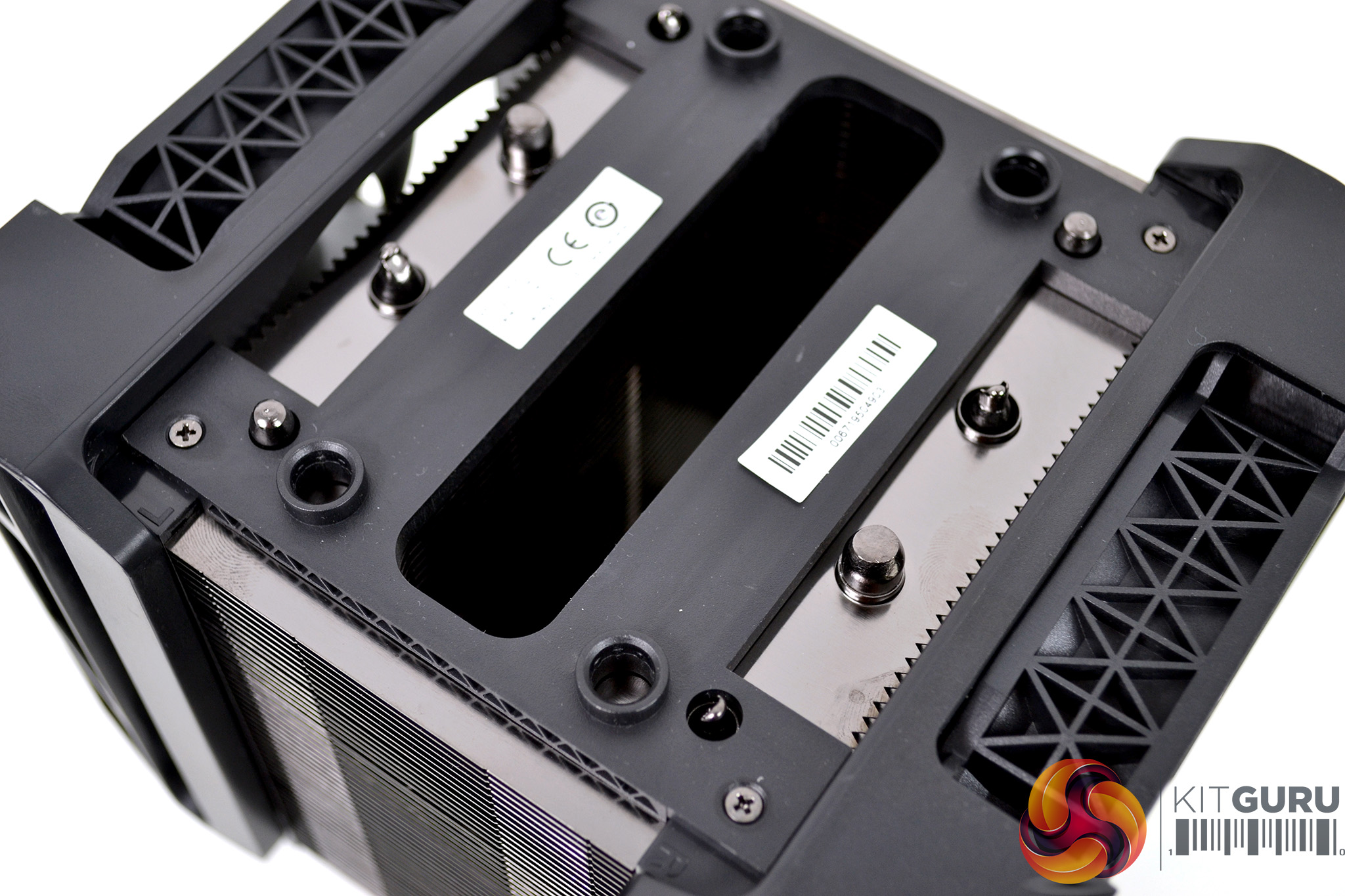With the Aluminium top panel removed, we can see that the heatsink links the dual tower design together, unlike similar coolers from other manufacturers that have completely separated heatsinks. This cut out in the centre is necessary to gain access to the screws during installation and provides plenty of access to the screw heads.