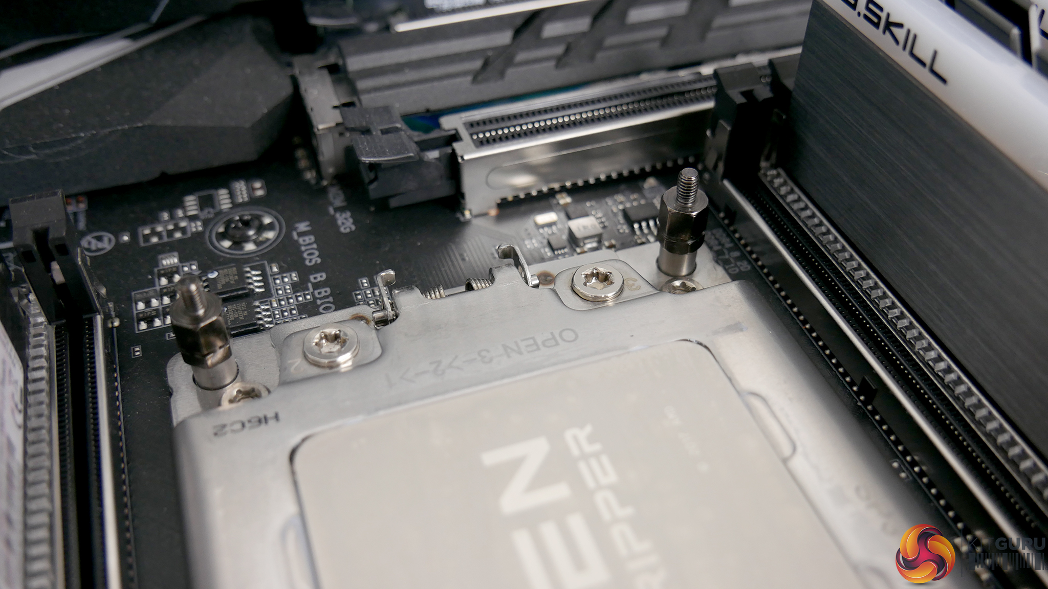 Next, install the socket TR4 specific brackets, which is a reversal of how we removed the intel ones above. Again, locate the brackets in their slots and push together until you hear them click into place.