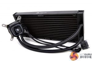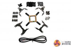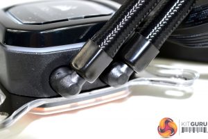In terms of cables, there is a fan splitter and a SATA power connector that are hard-wired directly to the pump head, along with USB cable that connects to the motherboard USB header and to the pump, so all wiring connects to the cooler itself and all pump/fan speed is controlled via the Corsair iCUE software using the USB motherboard connector.
