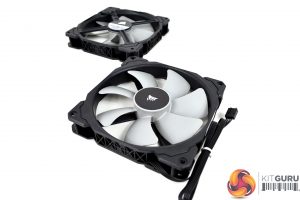 The two 140mm fans included with the H115i RGB PRO XT are regular Corsair ML140 non-RGB variants. So no fancy RGB lighting and extra RGB cables to deal with when it comes to installation, which means installation time should be reduced since there are fewer cables to manage and no additional lighting controllers to hide away in the PC case.