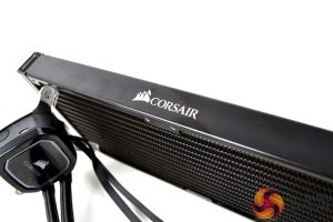 Moving on to the actual cooler we can see that the H115i RGB PRO XT has the usual high-quality appearance that we have come to expect from Corsair. The radiator has an evenly applied and smooth black coating with the Corsair logo on both edges in a chrome finish.
