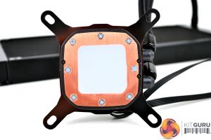 At the base of the pump is a copper microchannel thermal transfer plate with an evenly machined face. Corsair has applied a layer of its high performance TMX50 thermal compound to the thermal transfer plate which should speed up installation further.