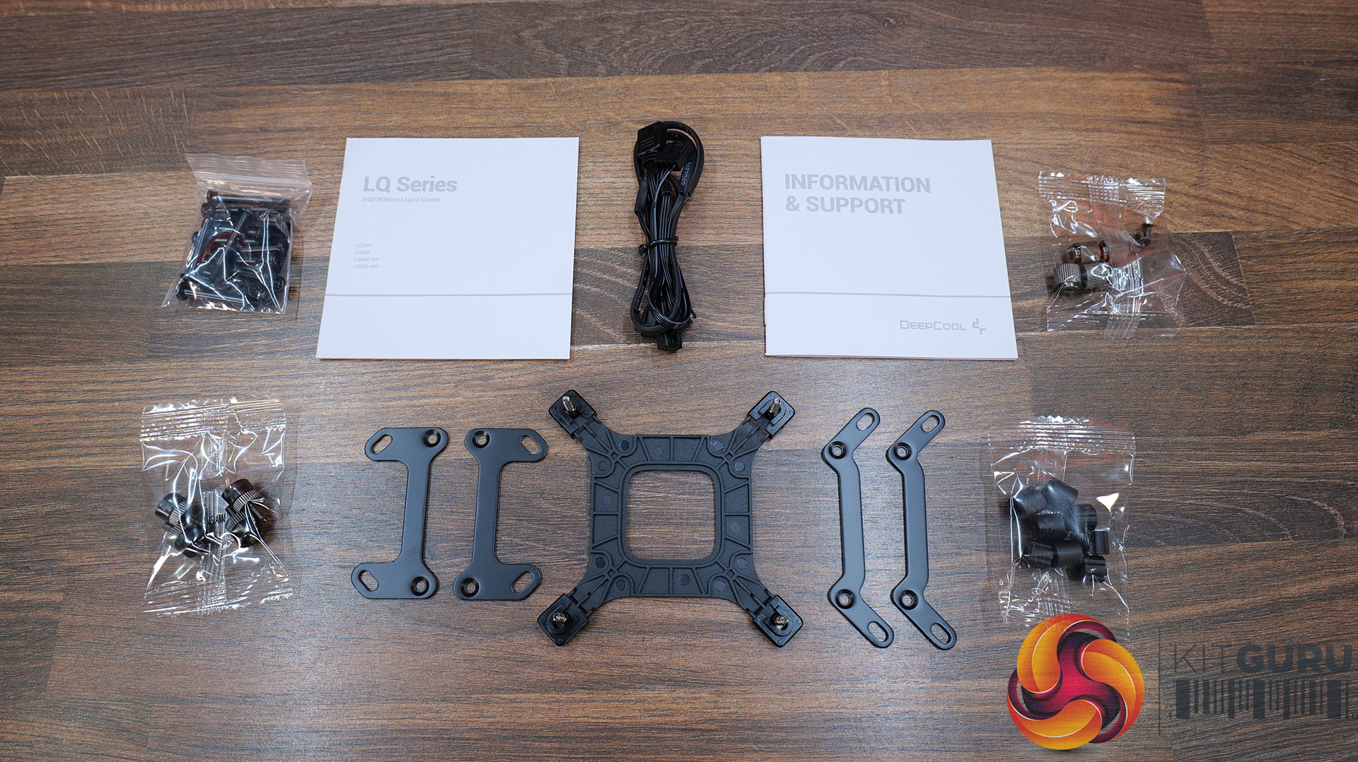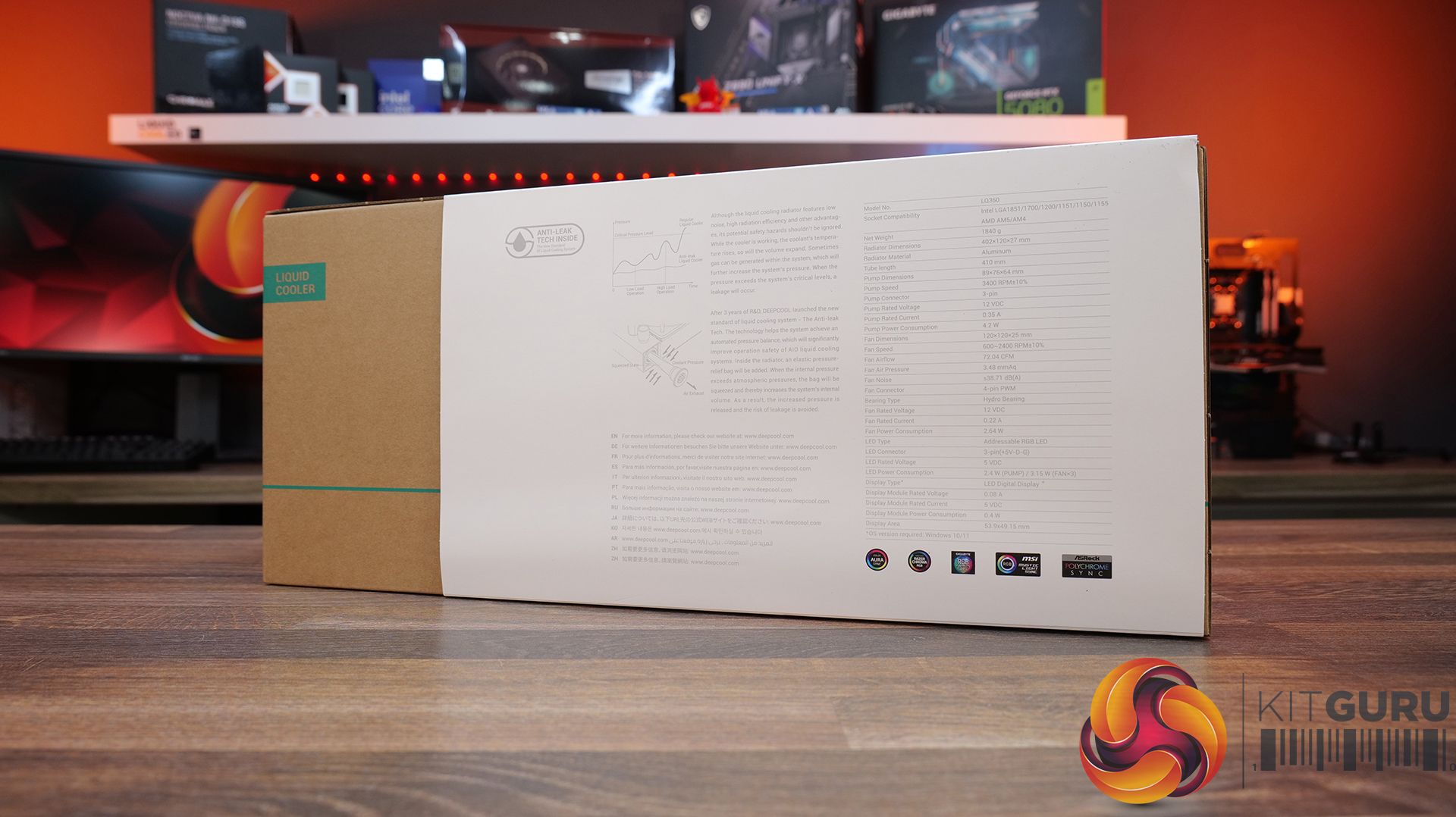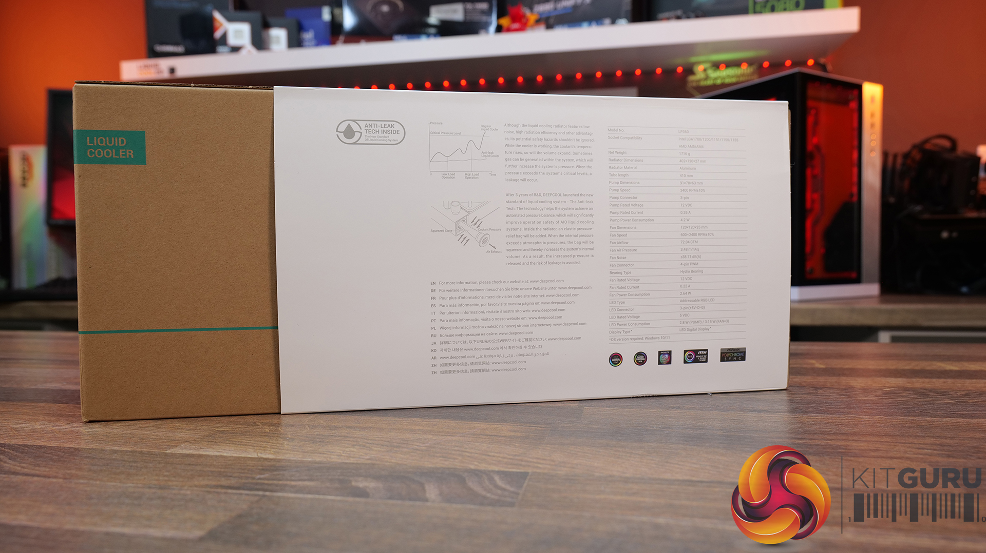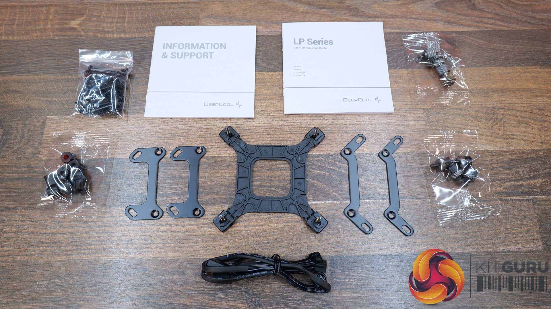 • LP360 radiator is equipped with Deepcool patented Anti-Leak Technology. Installation is quick and simple with support for all current-gen CPUs. Everything needed to mount the cooler on AMD or Intel platforms is included in the box.