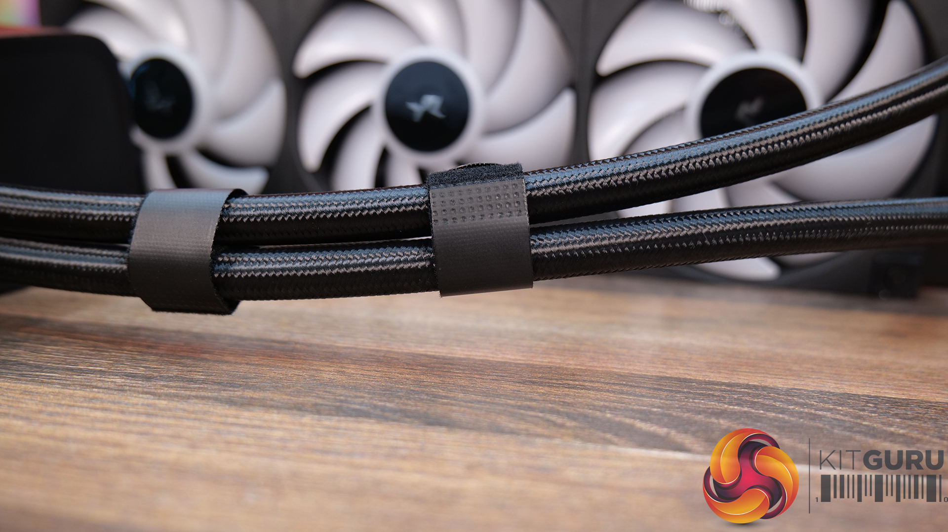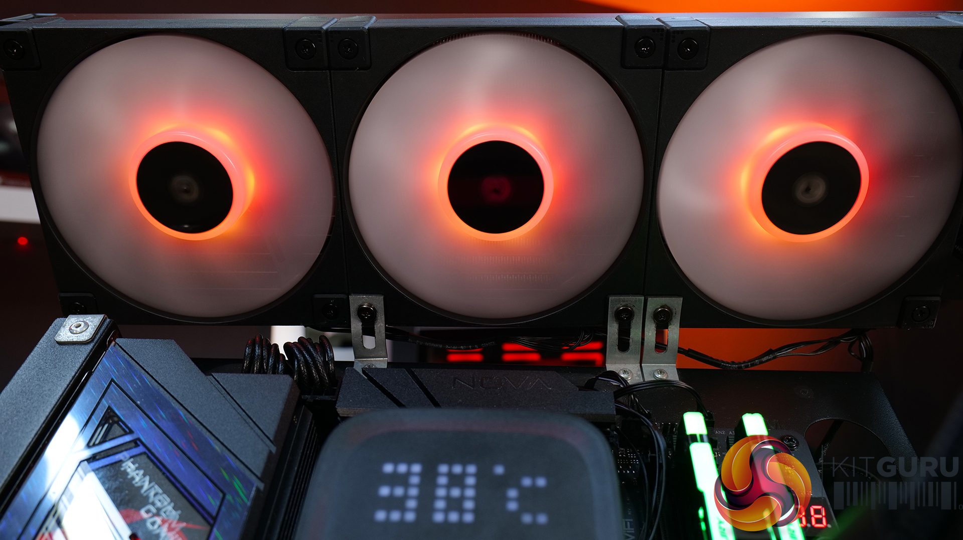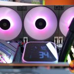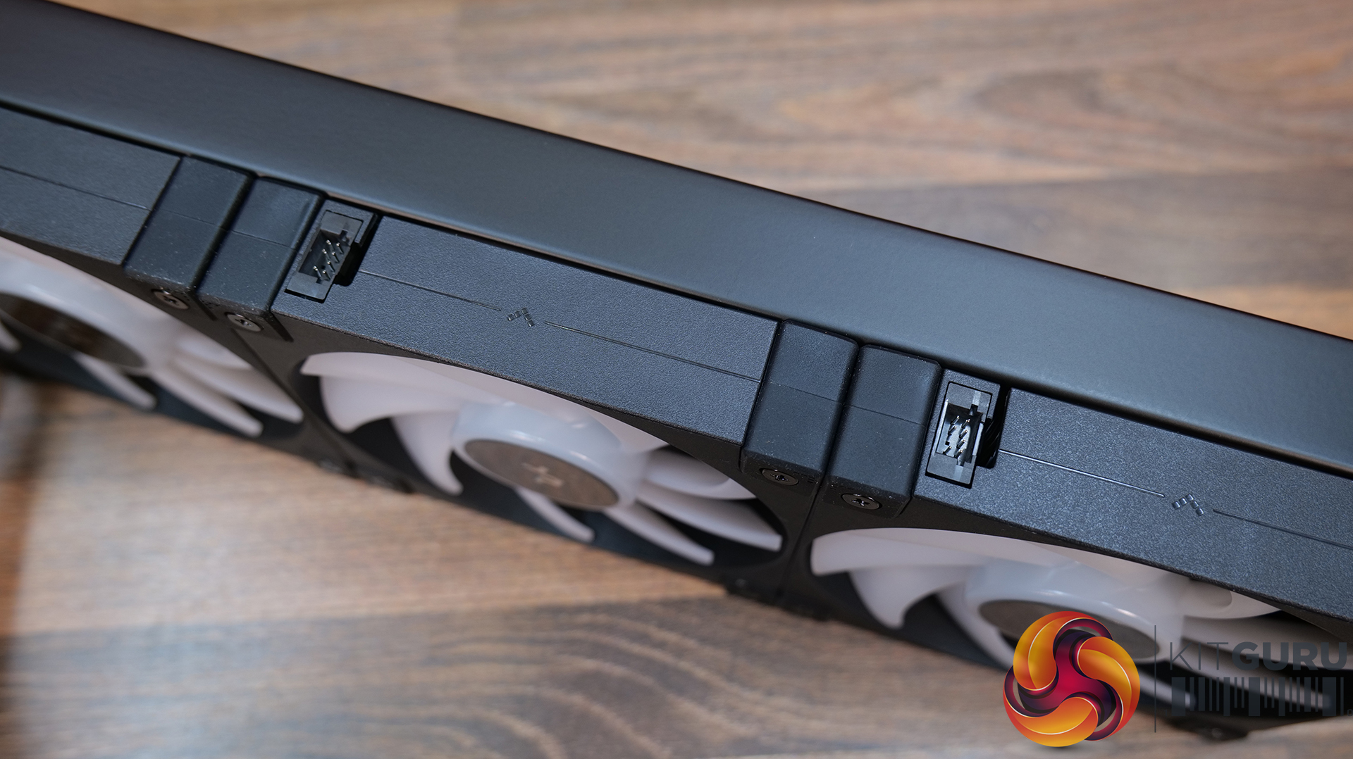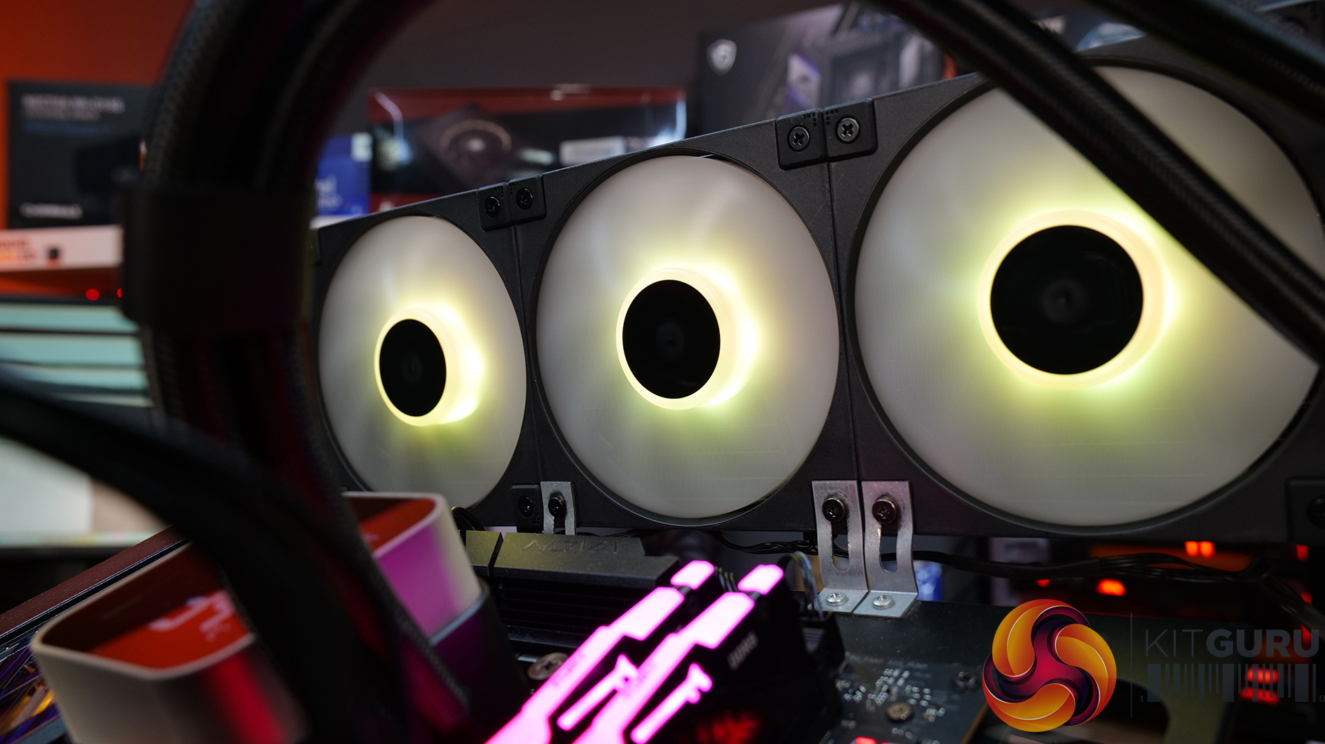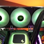 • LQ360 features two lighting zones with a pump head halo illuminated by ARGB LEDs, while the FD12 fans provide a vibrant glow from the ARGB LEDs integrated into the hub. Connectivity is streamlined with a single 8-pin fan connector compatible with motherboard fan/ARGB connectors/controllers.