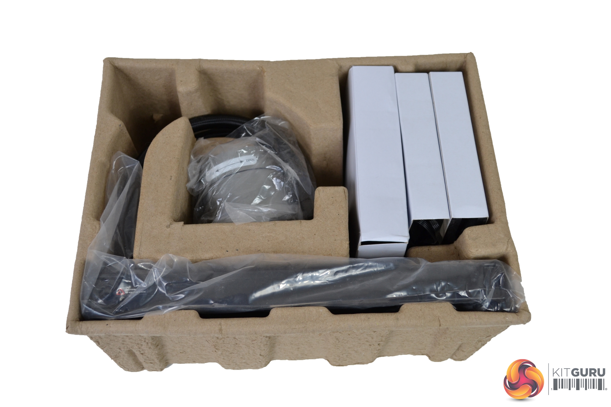 Also included are a bundle of cables and RGB lighting controller, an extra logo disc for the pump, the user manual and most importantly, the cooler itself.