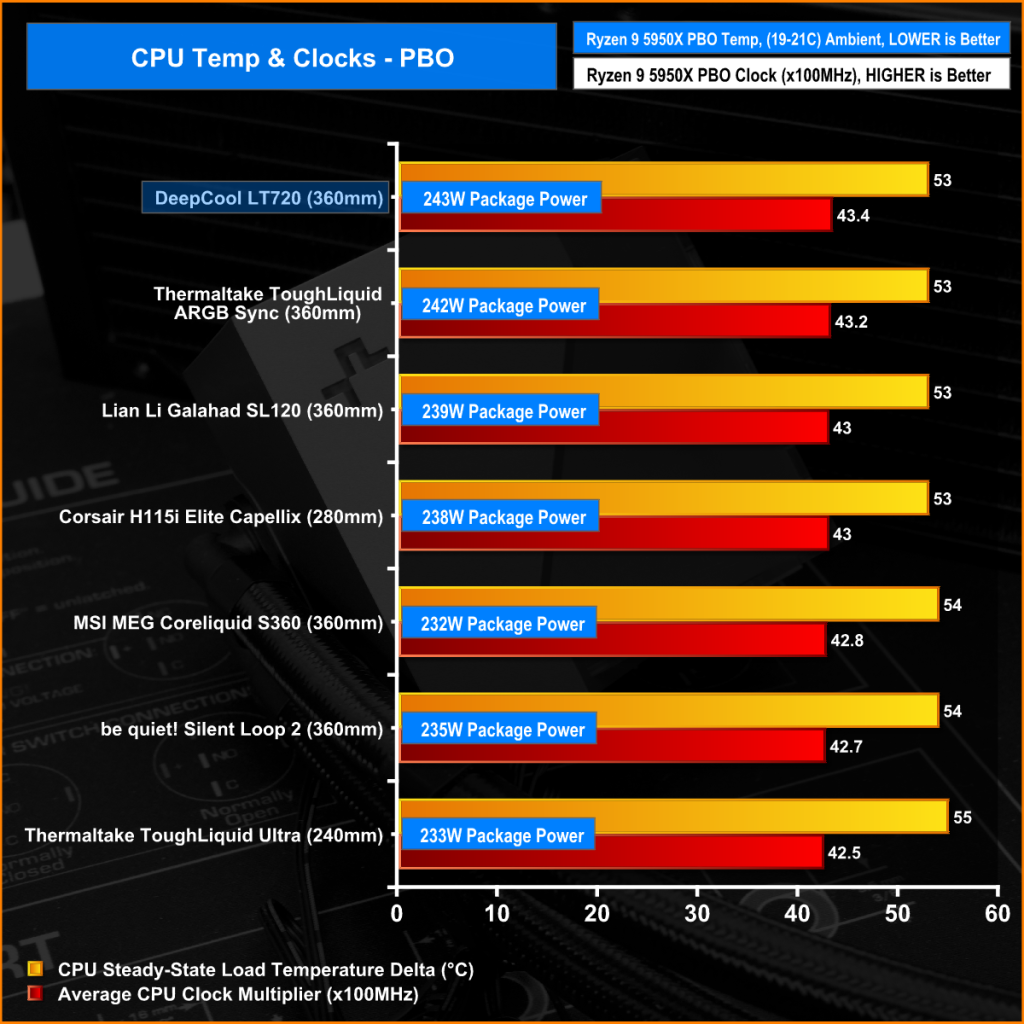 With the DeepCool LT720 handling almost 245W of package power, it's an excellent result.