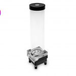 The EK-Classic XRES 250 SPC PWM RGB – Plexi (incl. pump) features a 250mm tall reservoir with an integrated EK-SPC 60 pump featuring 4-pin PWM speed control, which allows the pump to adjust RPM based on thermal load. The reservoir features a tubular clear acrylic design that further enhances the RGB lighting effects.