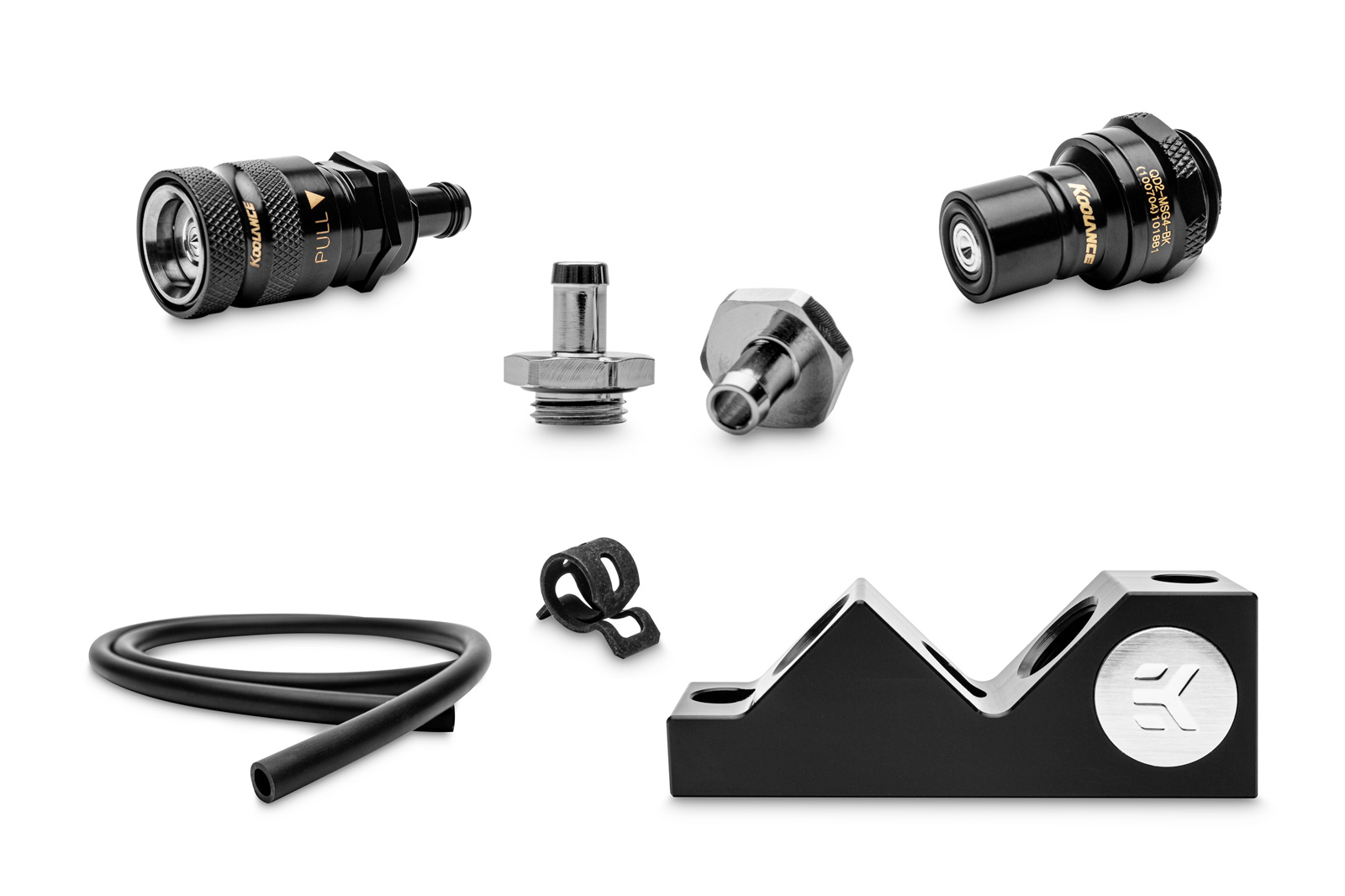 Unlike EK’s consumer-grade products, designed for desktop systems, the new professional line-up has a more understated appearance with absolutely no RGB. The new EK-Pro Quick Disconnect Kit is the ideal solution for quickly installing additional graphics cards, which reduces system downtime. The kit includes everything that is required to convert an existing GPU water block into a quick-disconnect ready product. In the kit is one meter of black ZMT tubing, two barb fittings, four tube clamps, an angled GPU terminal and a set of quick-disconnect fittings.