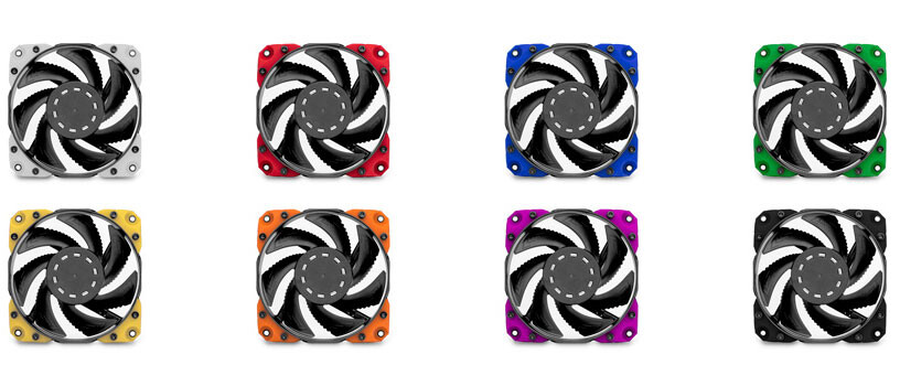 The brand new EK-Vardar X3M 120ER high static pressure fans feature upgrades to the lighting, new rotors and interchangeable rubber noise-reducing dampers on the four corners that are available in a series of different colours to add your own personal touch to your system. The rubber vibration dampers can be mounted for both push or pull airflow configuration and can be purchased separately in red, blue, yellow, orange, green, and purple.