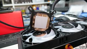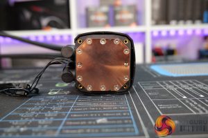 At the CPU/block base is a copper cold plate which comes with a pre-applied thermal compound coating and screw holes for fixing the upper mounting brackets. The cold plate is designed to cover all current desktop CPUs but not larger high-end desktop CPUs such as AMD Threadripper. It is compatible with all current Intel and AMD desktop platforms including Intel LGA1700 and AMD AM5 sockets.