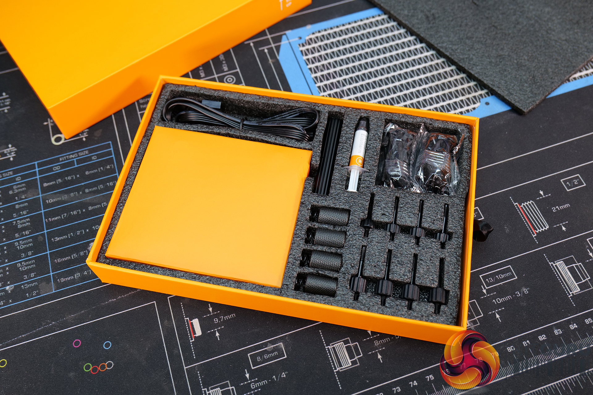 It's not often that I pay much attention to the packaging of CPU coolers, but it is worth a quick mention in this case as EK has gone the extra mile in this area. Instead of the usual cardboard carton and plastic bags in which we often see AIO coolers arrive, EK has very neatly packaged the Nucleus AIO in dense foam. Accessories are perfectly arranged in a separate box, it all looks very nice when you open the boxes.