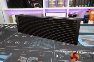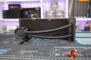 Previous generation EK AIO coolers came with Vardar fans, however, the Nucleus comes with Vardar’s successor the EK FPT fan. EK FPT fans look similar to Vardar RGB fans with a black frame and opaque fan blade design but they have short cables with proprietary connections so that they can be daisy chained to reduce cable clutter. A cable extension then converts the connection back to standard 4-pin PWM and 5v D-RGB connections.