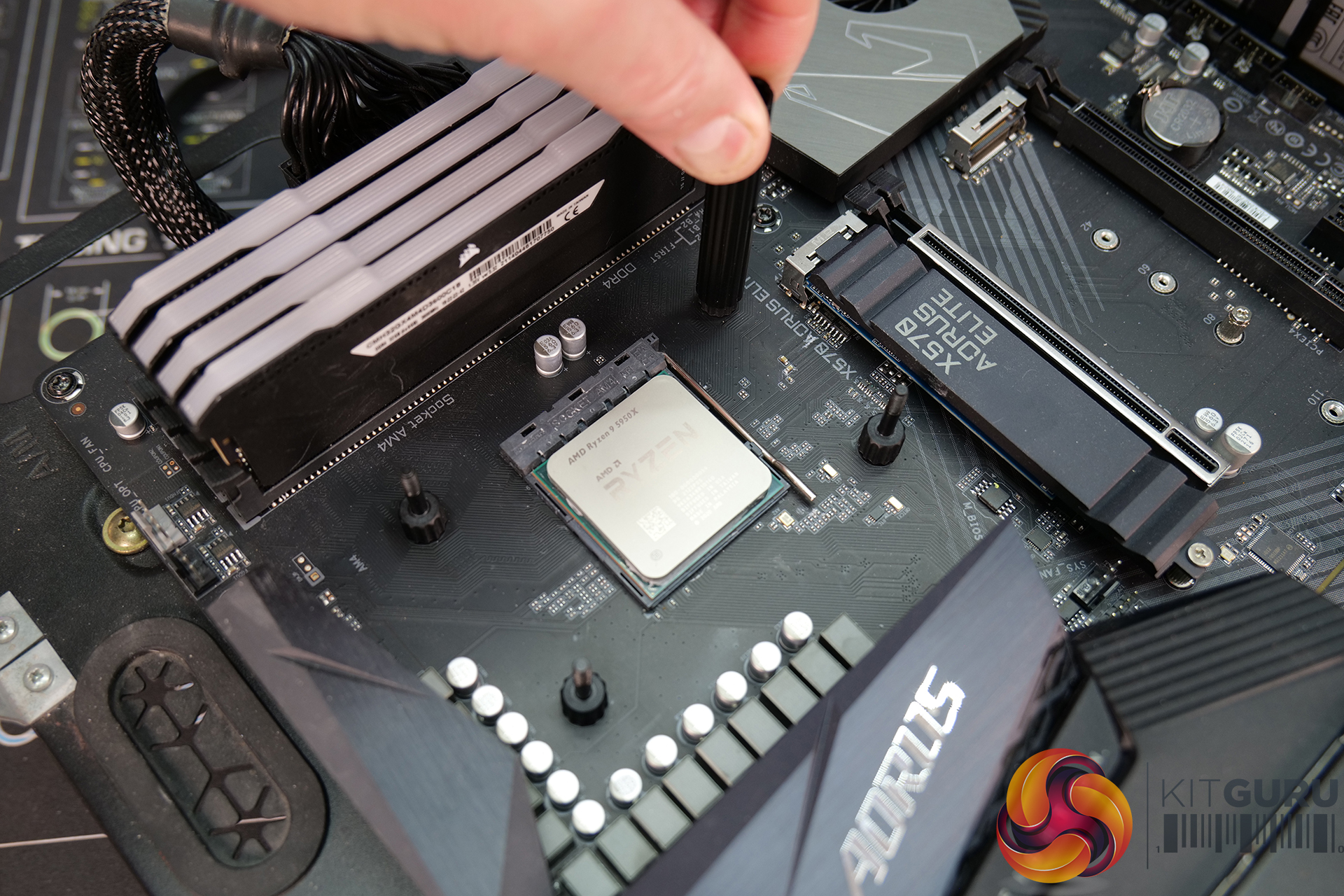 To install the cooler on AMD AM4/AM5 platforms first you need to remove the stock AMD plastic CPU retention brackets. Select the correct type of standoff and screw them in by hand to the original AMD backplate, use the standoff tightening tool included with the cooler for final tightening.