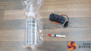 The CPU block/pump is a relatively compact unit measuring 70 x 70 mm at the base of the block is a copper micro-skived cold plate which comes with a Dow Corning thermal compound pre-applied. There is a small tube of additional thermal compound in the maintenance kit for re-installation.
