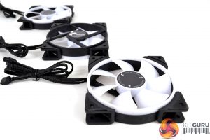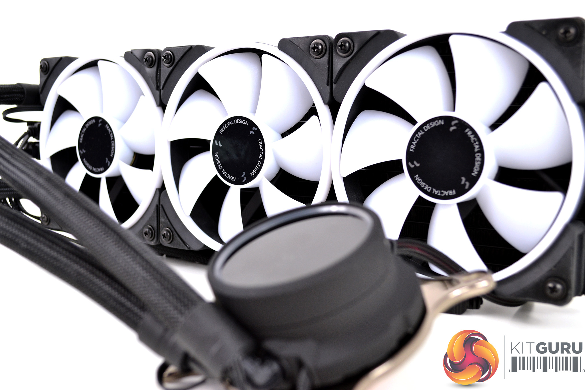 All three of the Celsius+ coolers that Fractal Design sent over to us include the Prisma RGB fans with a speed range of 500-2000 RPM (120mm) and 500-1700 RPM (140mm). They have a sturdy outer black plastic frame with rubberised anti-vibration mounting points, white opaque fan blades and an outer ring that are illuminated with RGB lighting. Fan speed can be PWM controlled via the 4-pin connection and RGB cables are equipped with Standard 3-pin 5V connectivity.