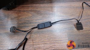 Then connect 3-pin ARGB cables in a daisy chain between the fans and CPU block, then connect the female end to a motherboard 3-pin 5V ARGB header.
