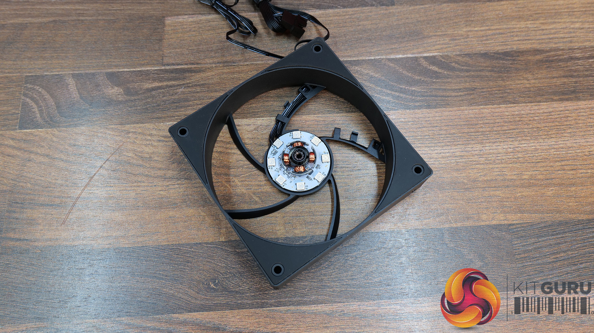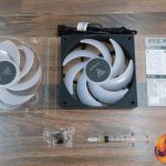 A key feature of the fans is the option to change the fan blade. Forward and reverse blades are included in the pack, and it’s a simple case of pushing one blade off and clipping the replacement blade in place. When the blade is removed, you can see the motor windings, the PCB and LEDs for the ARGB lighting, too.