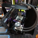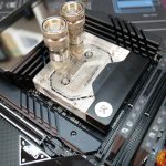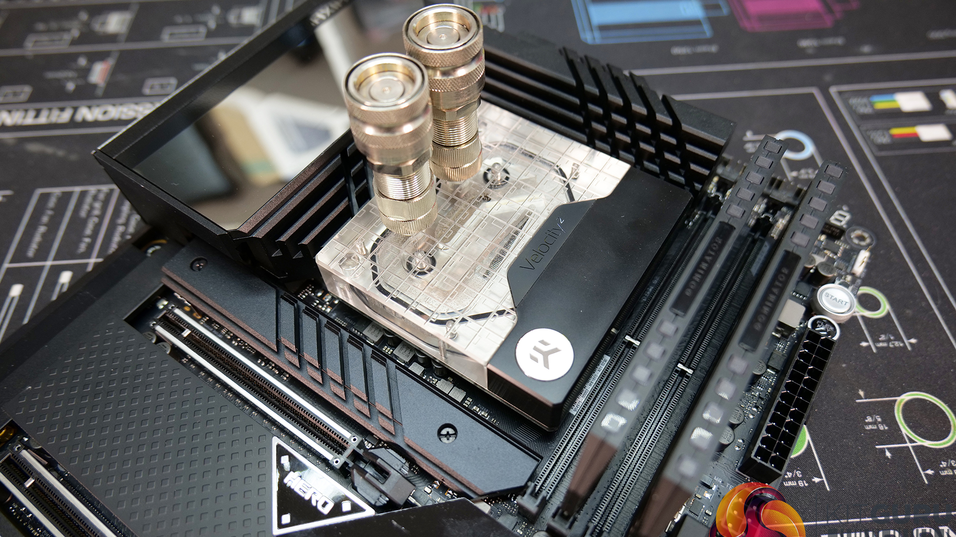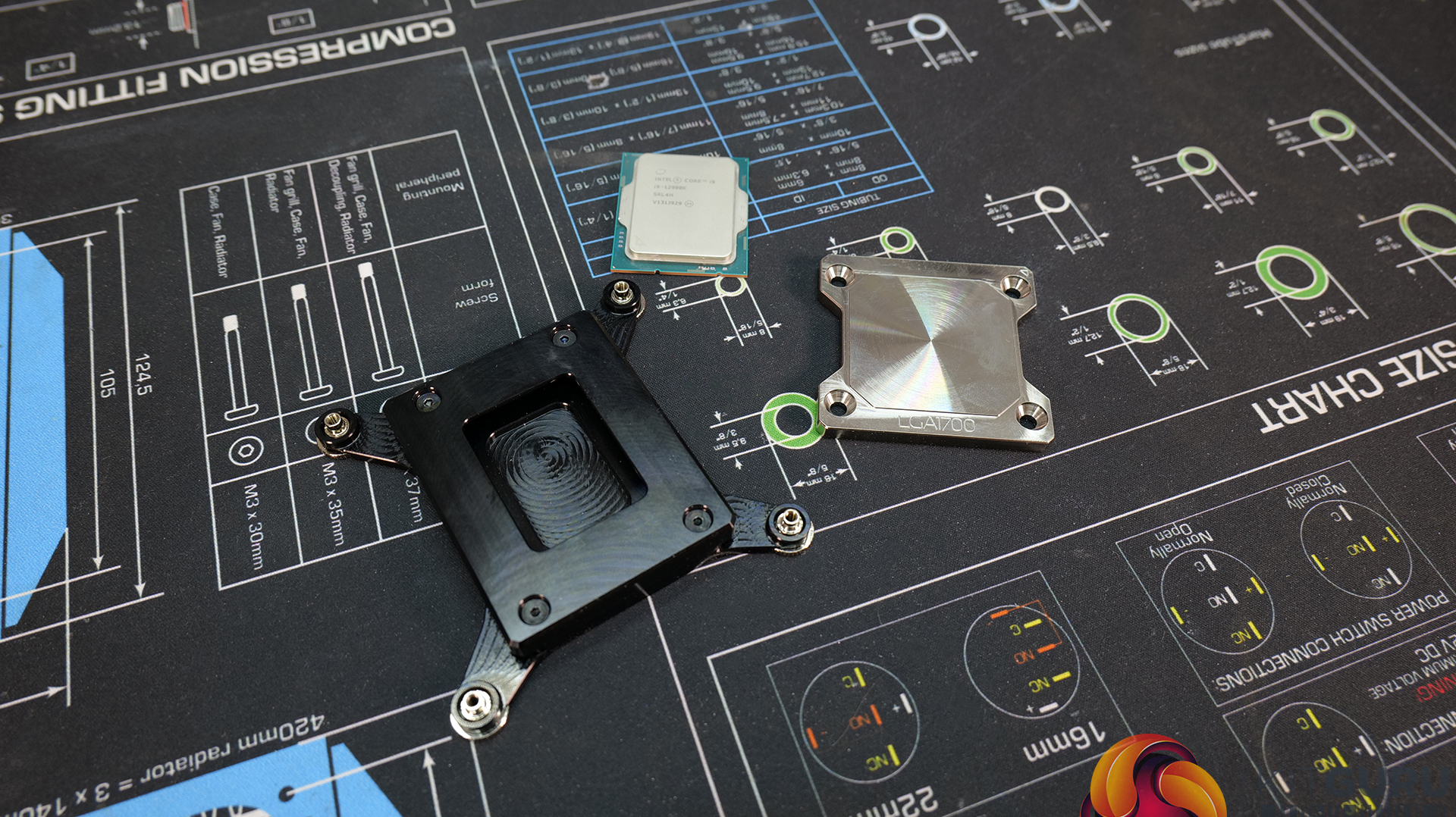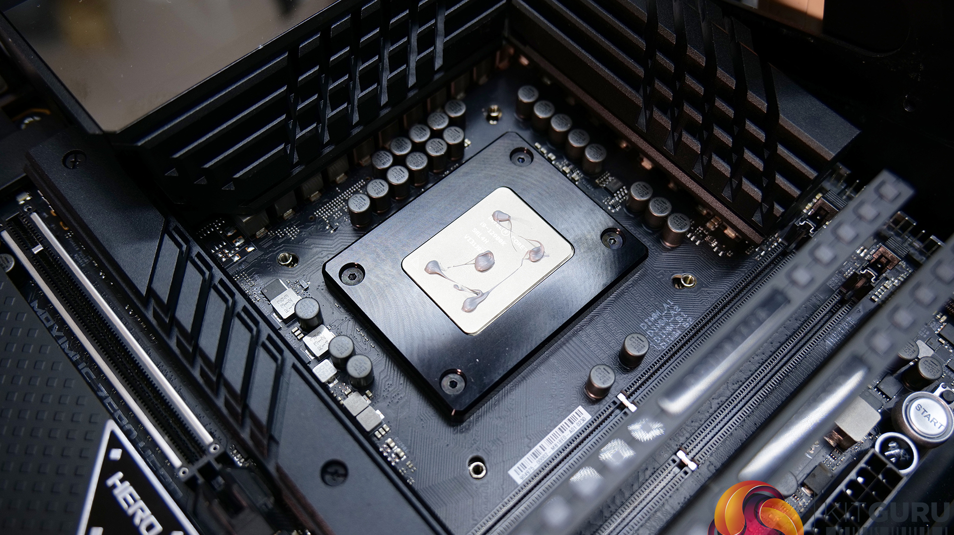 You can see in the video that we came across an issue with the first prototype sample, during installation the water block cold plate would foul on the CPU guard frame before enough mounting pressure was applied to the CPU die, which meant the system would not POST. EKWB is planning a revision of the water block to combat this issue but for now, grinding down the surface of the CPU guard was a temporary resolution to the problem.