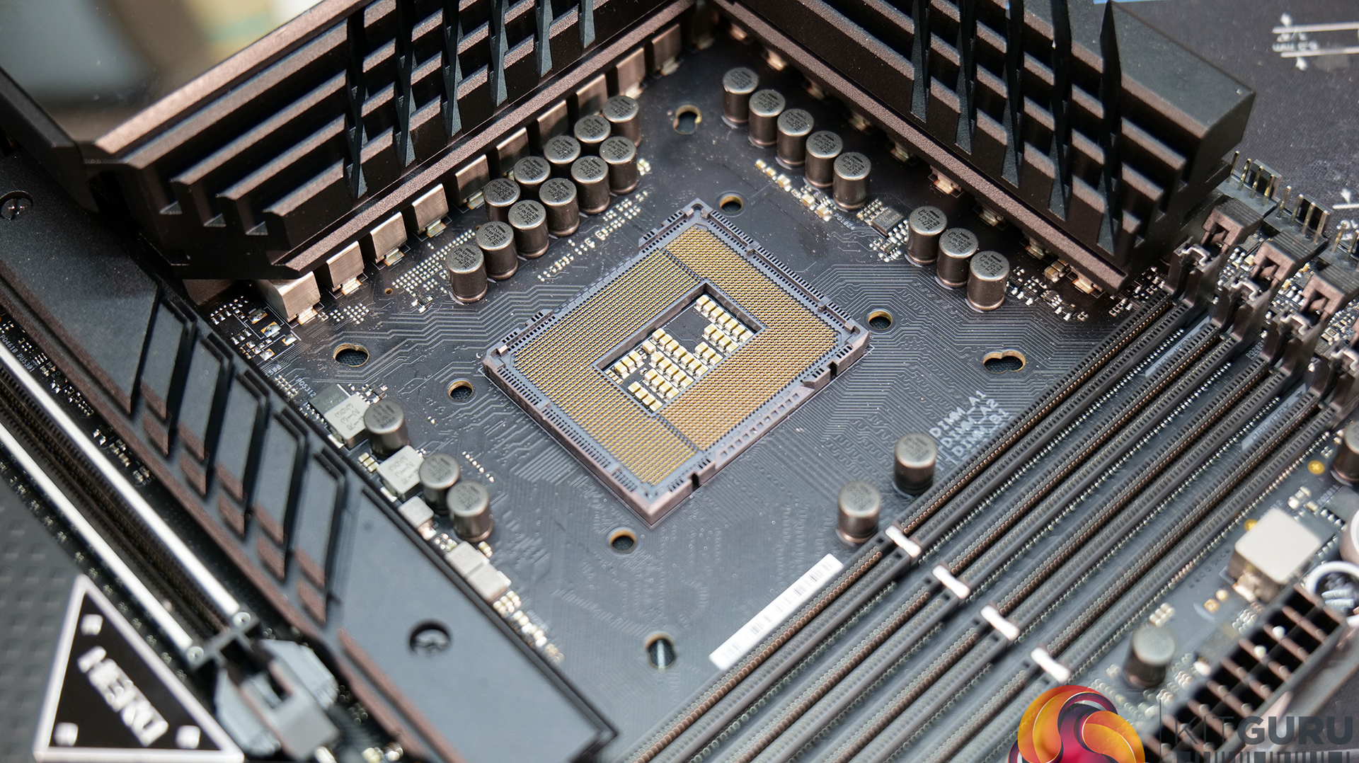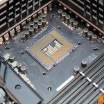 By removing material from the surface of the CPU guard we were able to get the system to POST but were still unable to load our previous BIOS profile with XMP enabled, so there is still a potential issue with CPU mounting pressure. However, by using Thermal Grizzly Conductonaut liquid metal TIM we saw a significant reduction in CPU thermals.