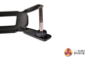 Take the four black plastic spacers and slide them over the standoffs. The spacers are designed to be fitted only one way around and, in this orientation, they grip on to the standoffs to hold the backplate in position while the rest of the installation is being completed.
