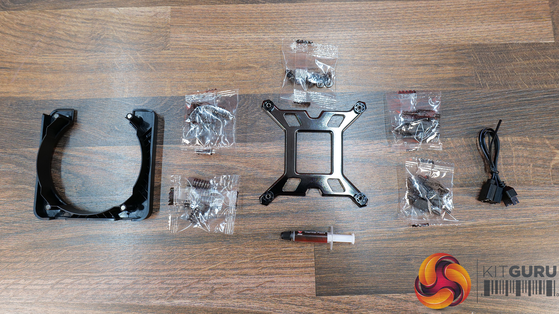 In terms of included accessories, all installation hardware for current AMD and Intel platforms is bundled with the cooler. Also included is a small tube of thermal compound, as there is none pre-applied to the cold plate and a fan extension cable. An installation guide is available digitally via QR code, but there's no physical paper manual included.