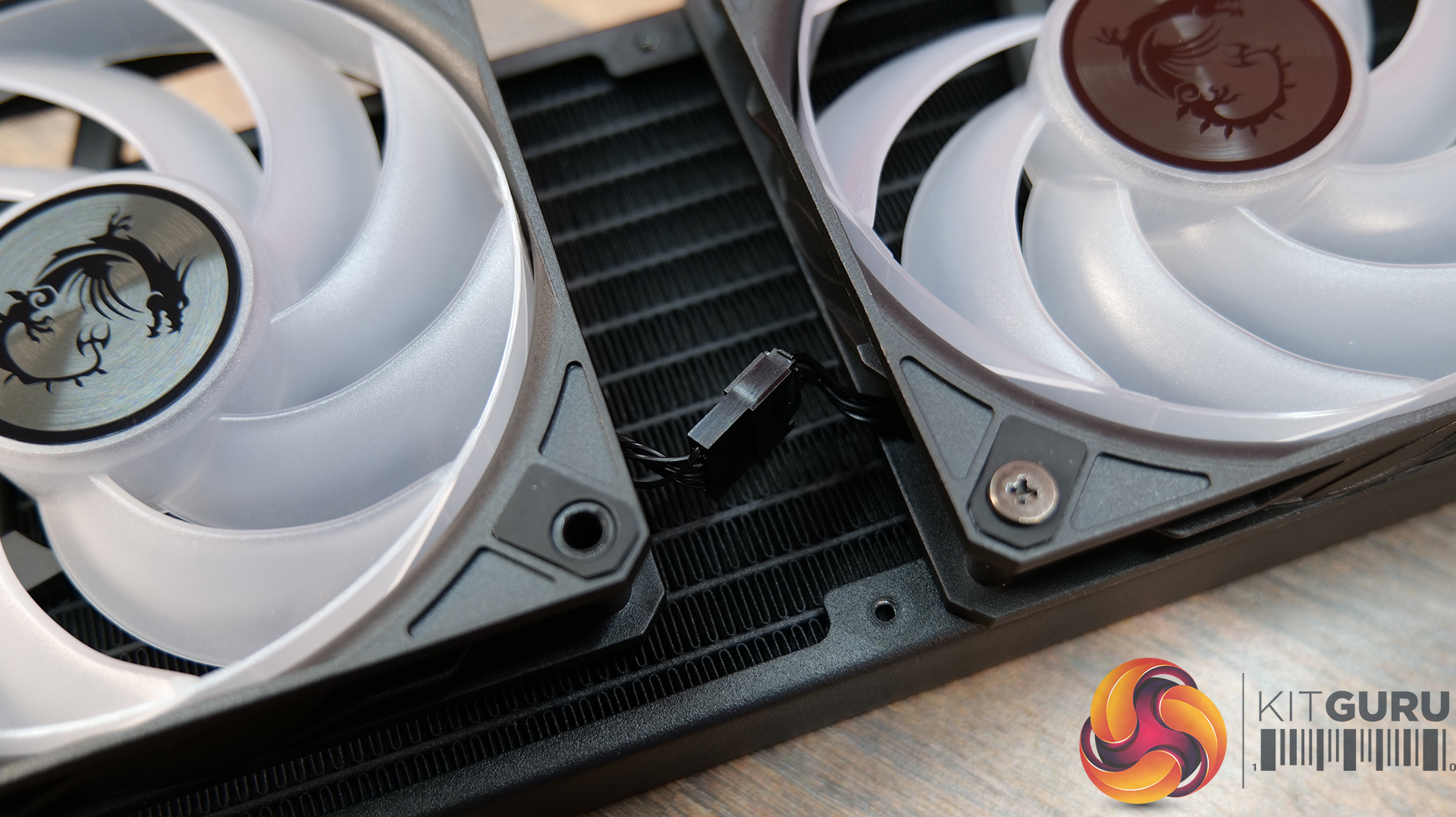 MSI uses standard wiring connections in the MPG CORELIQUID P13, so the pump and fans connect directly to 4-pin PWM headers, the ARGB lighting uses 3-pin 5V connections and the LCD connects to a USB 2.0 motherboard header so everything is connected to and controlled by the motherboard and no hubs are required.