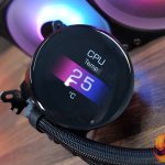 • MPG CORELIQUID 360 features a curved glass CPU block top cover housing a 2.1-inch IPS LCD screen with 480 x 480 resolution and 600 nit peak brightness that can be configured and customised to display real-time system info, animated visuals or used as a secondary display.