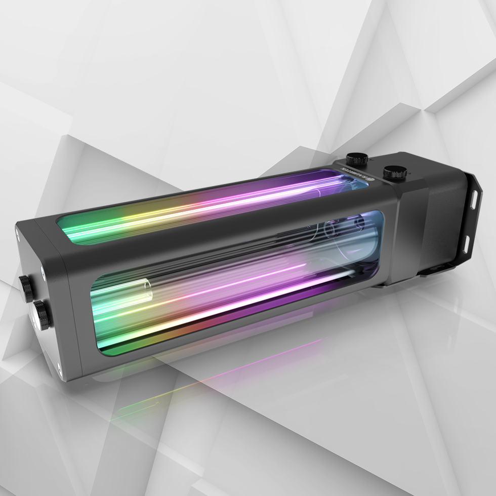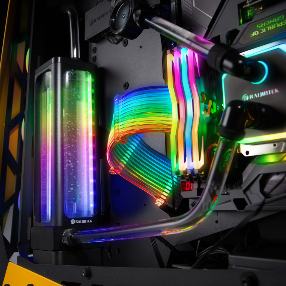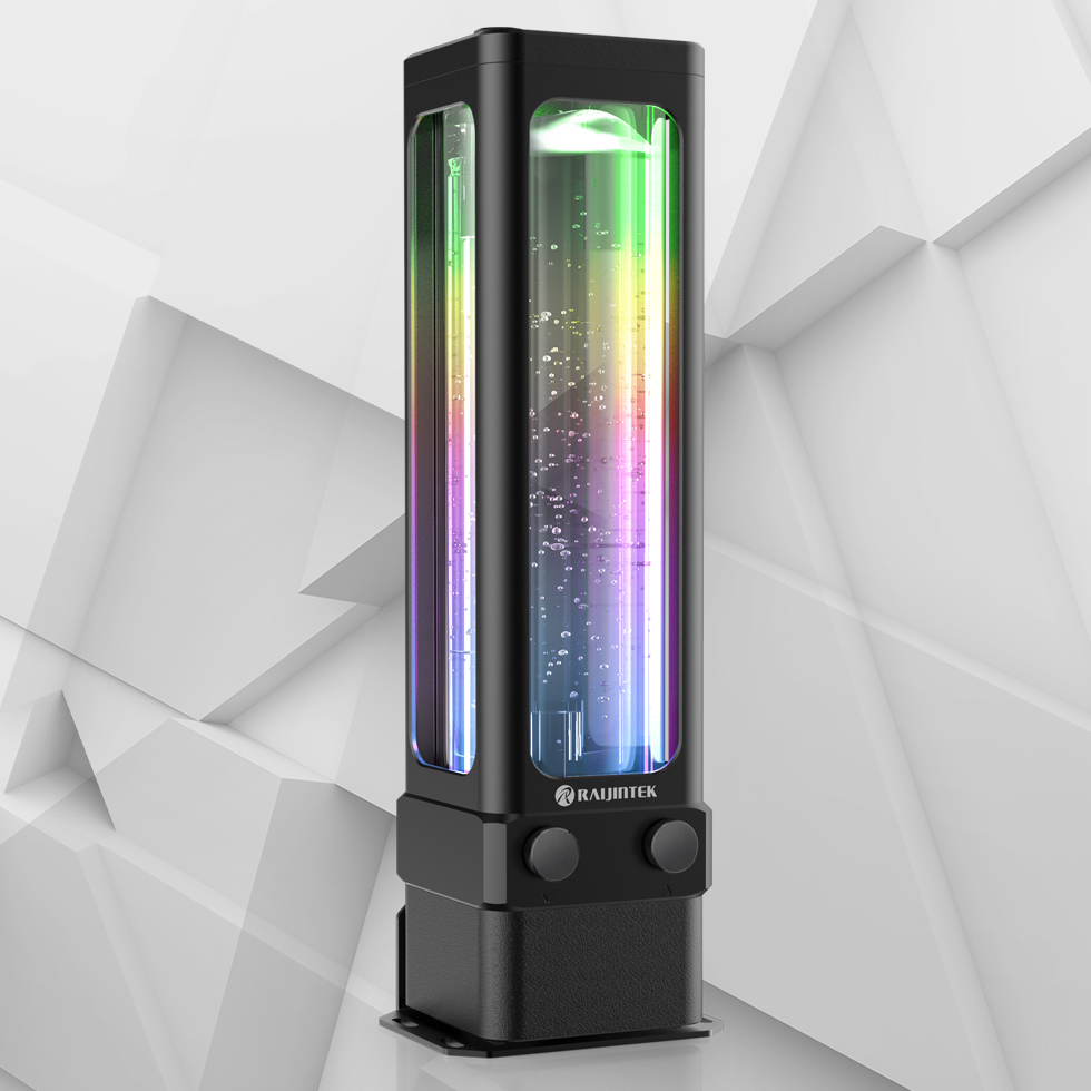 The Antila D5 EVO RBW series from Raijintek is equipped with a cylindrical reservoir manufactured from 6mm tempered glass, encased inside a 2mm thick aluminium frame with a POM top cover/bottom pump housing and unique rainbow ARGB illumination that makes it a worthy solution for the most elaborate custom water-cooling builds.