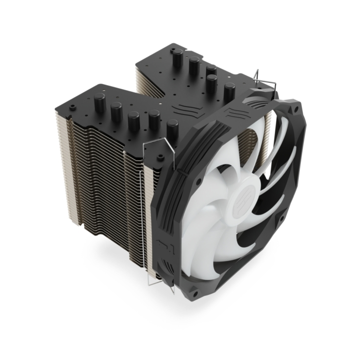 The new tower cooler also includes the brand-new Stella HP RGB 140mm SE PWM fan featuring modern integrated RGB lighting while being more powerful at the same time. The Stella HP RGB fan offers a new rotor blade design with a total of nine rotor blades to improve airflow performance and lower noise levels. Due to its PWM support, the 140mm Stella HP RGB fan can operate with a speed range of 500 – 1400RPM, making it ideal for cooling processors with high TDP.