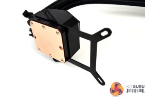 First off, if it’s not already fitted, take the Intel 115X top mounting bracket and slide it into the slots on the pump housing, until firmly fixed in place. There are no further screws to secure it.