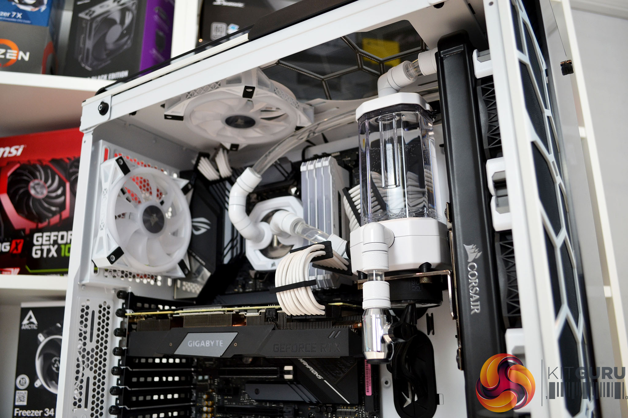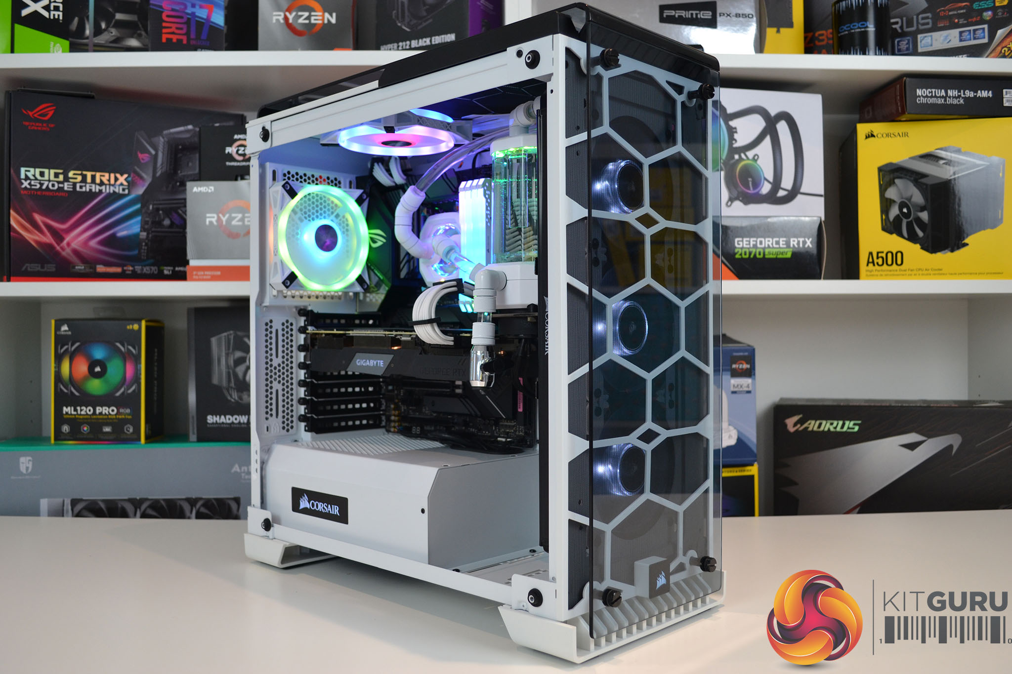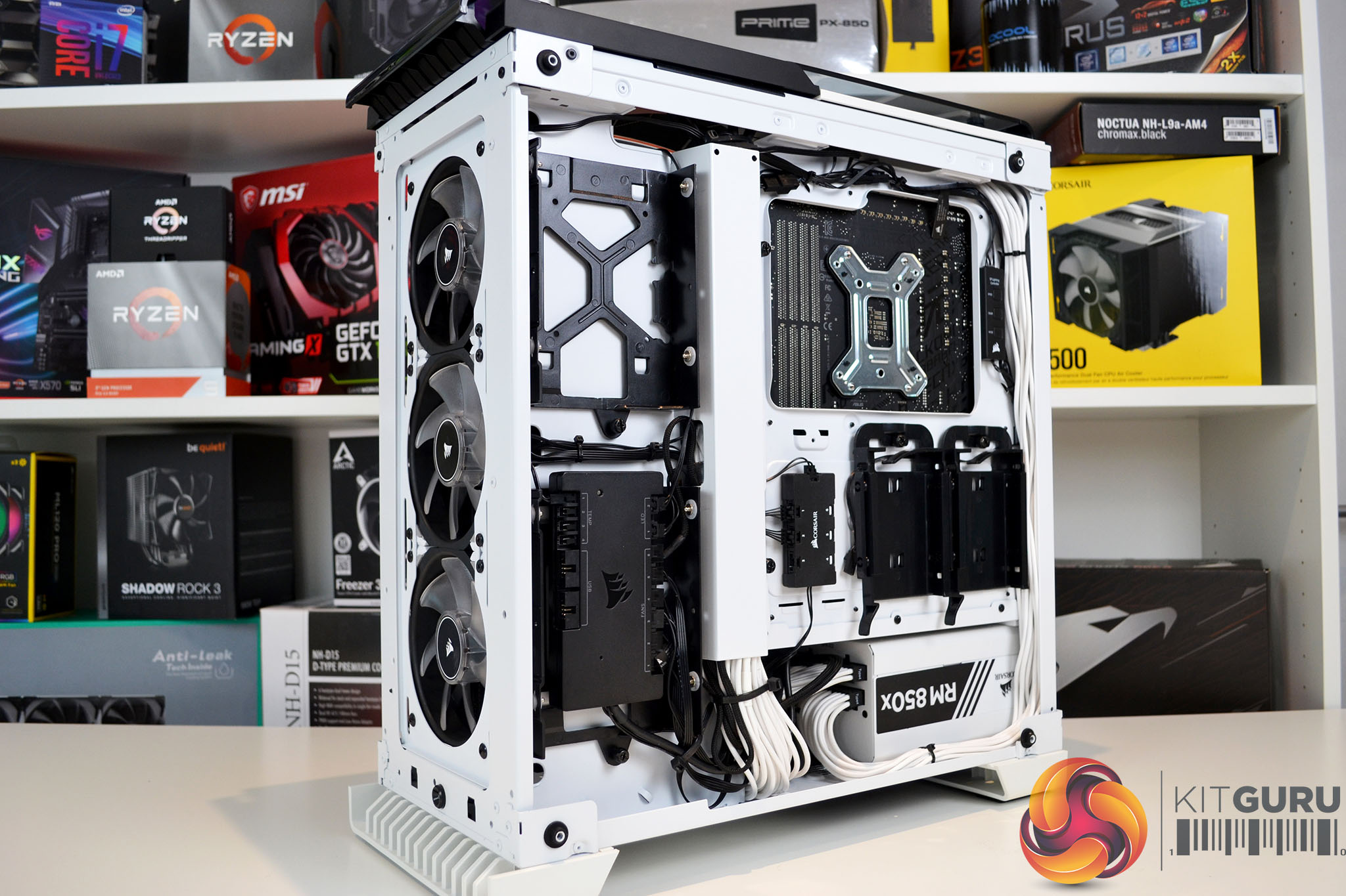 To show off these new Corsair custom cooling parts in all their glory, we need to build a system that not only showcases the aesthetics but one that we can easily swap out the custom loop for other cooling solutions to compare performance, so we can discover just how good the Hydro-X water cooling parts really are. To do this, we will put the new white Hydro-X XC7 CPU block and XD5 pump/res combo up against some fierce competition including a gen 6 Asetek based AIO cooler and the legendary Noctua NH-D15 tower cooler.