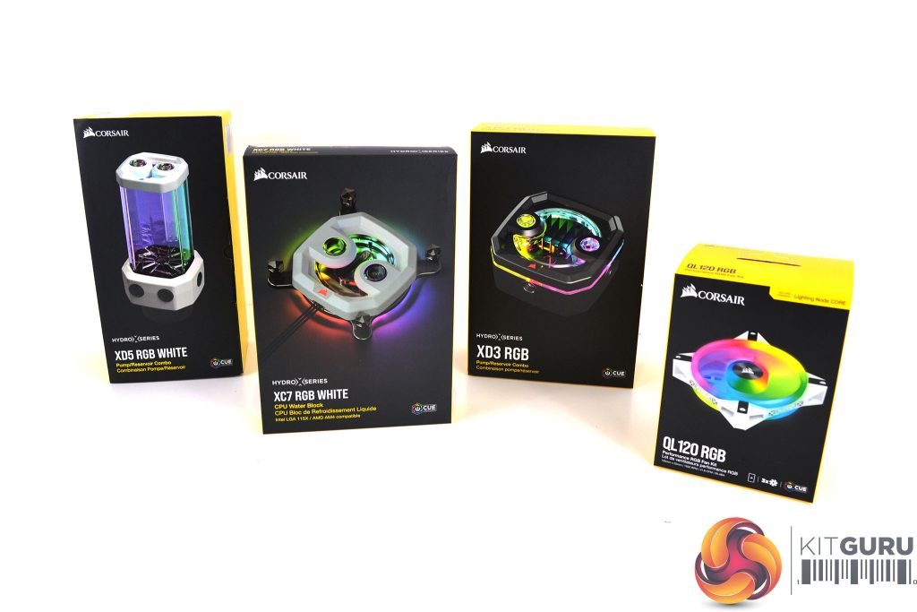Packaging for all these new products follows the Corsair tradition of a black and yellow theme. All outer packaging is relatively thin cardboard, inside the XC7, XD5 and XD3 box, the contents are protected with foam or plastic and the individual QL Fans are separated by additional cardboard internal packaging inside the multi-pack box.
