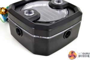 There are a total of six G1/4-inch ports on the XD5, two at the top – one of these can be used as an inlet port and the other as a fill port, at the base there is a single outlet and three ports that can be used as inlets, drain or for the coolant temperature sensor.