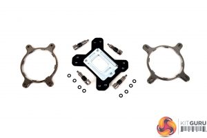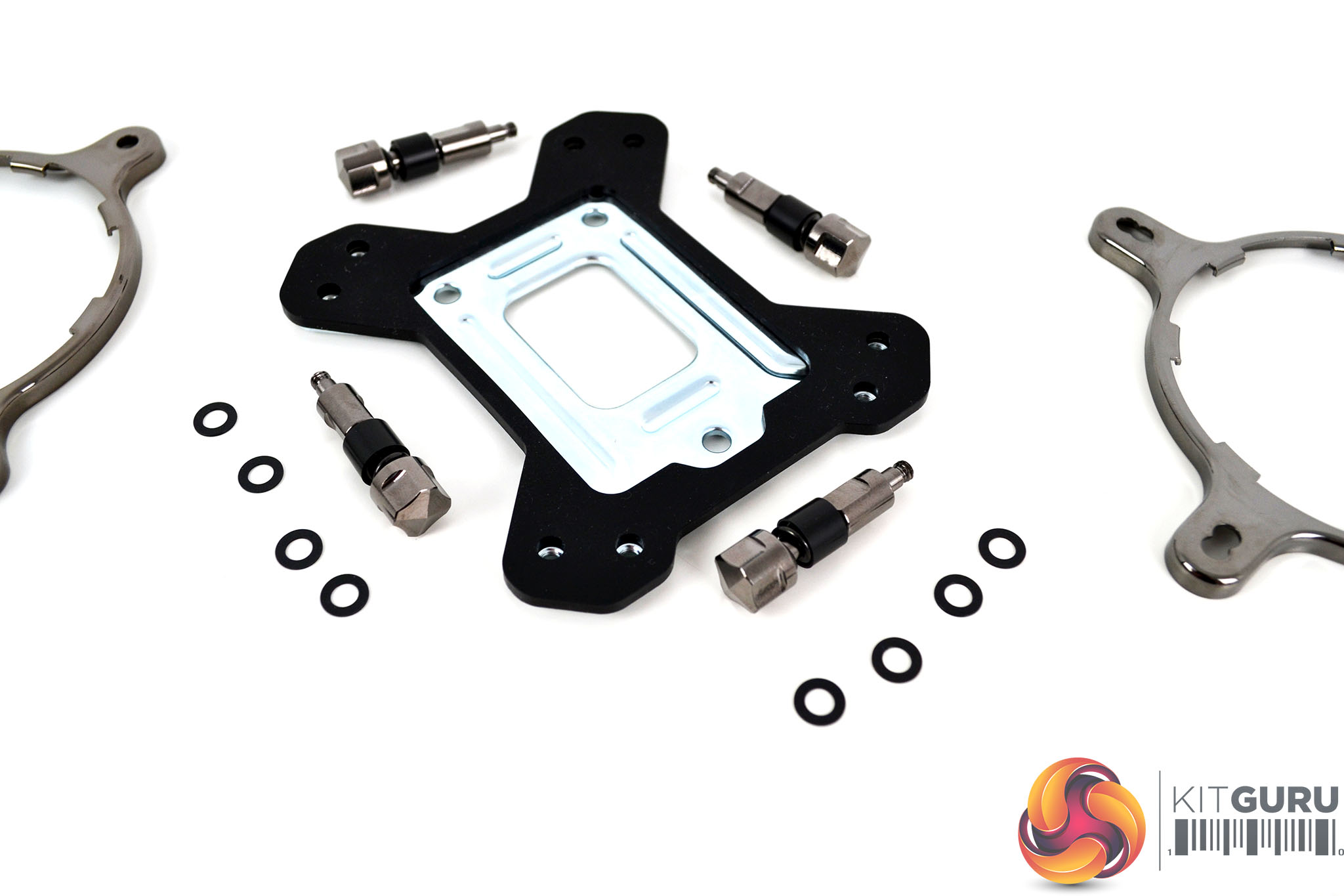 Installation of the CPU block uses a very similar method to an Asetek system, with an upper mounting bracket that is rotated into position and then locks in place with a series of hooks. Standoffs are screwed to a backplate that the CPU block upper bracket locates on and is held in position via thumbscrews with springs to provide the correct tension.